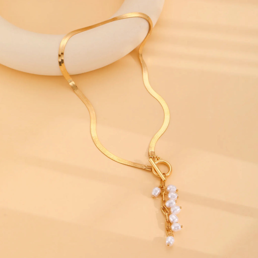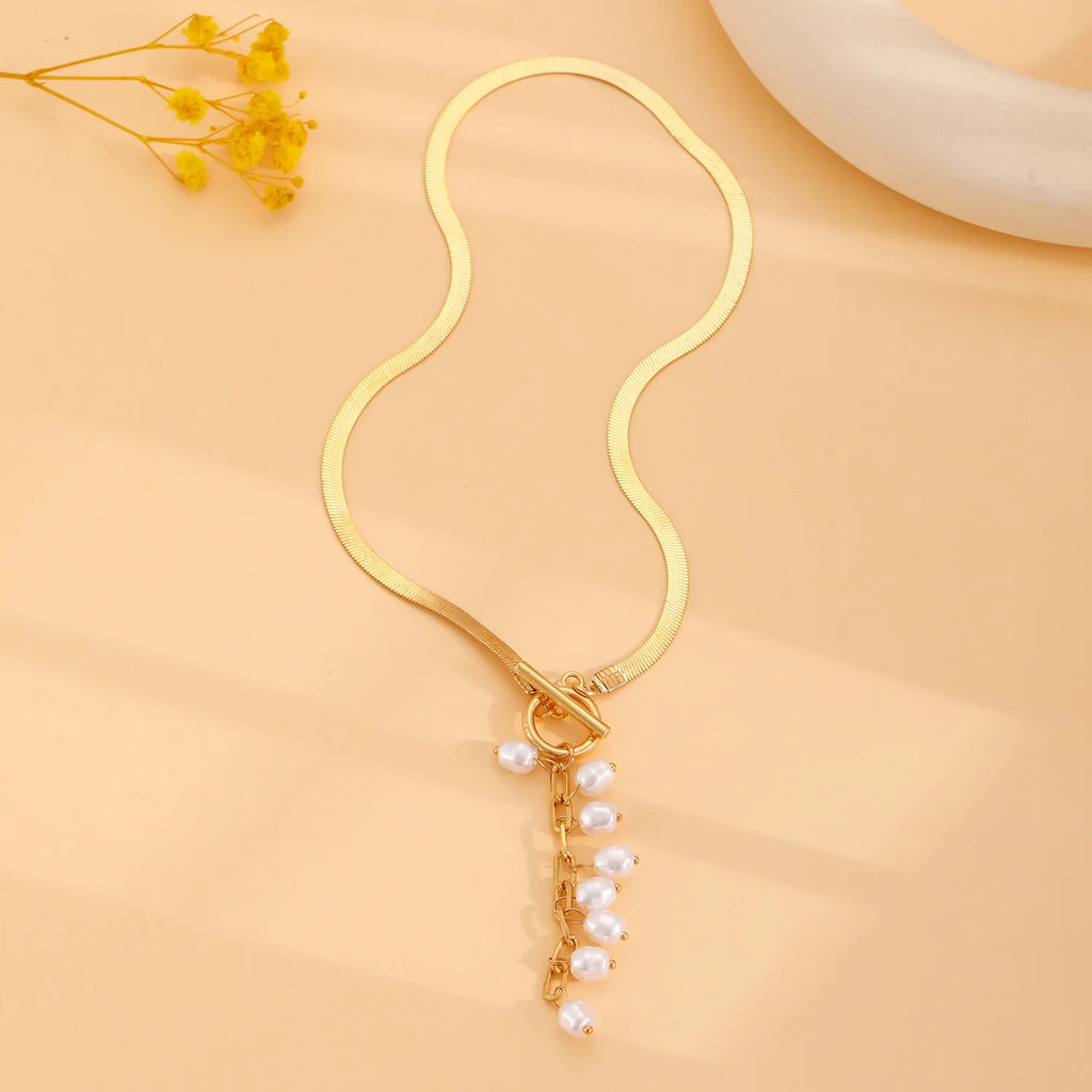 Crafted from premium stainless steel and adorned with delicate teardrop-shaped faux pearls, this necklace transitions effortlessly from a chic accessory to an everyday statement of sophistication.
